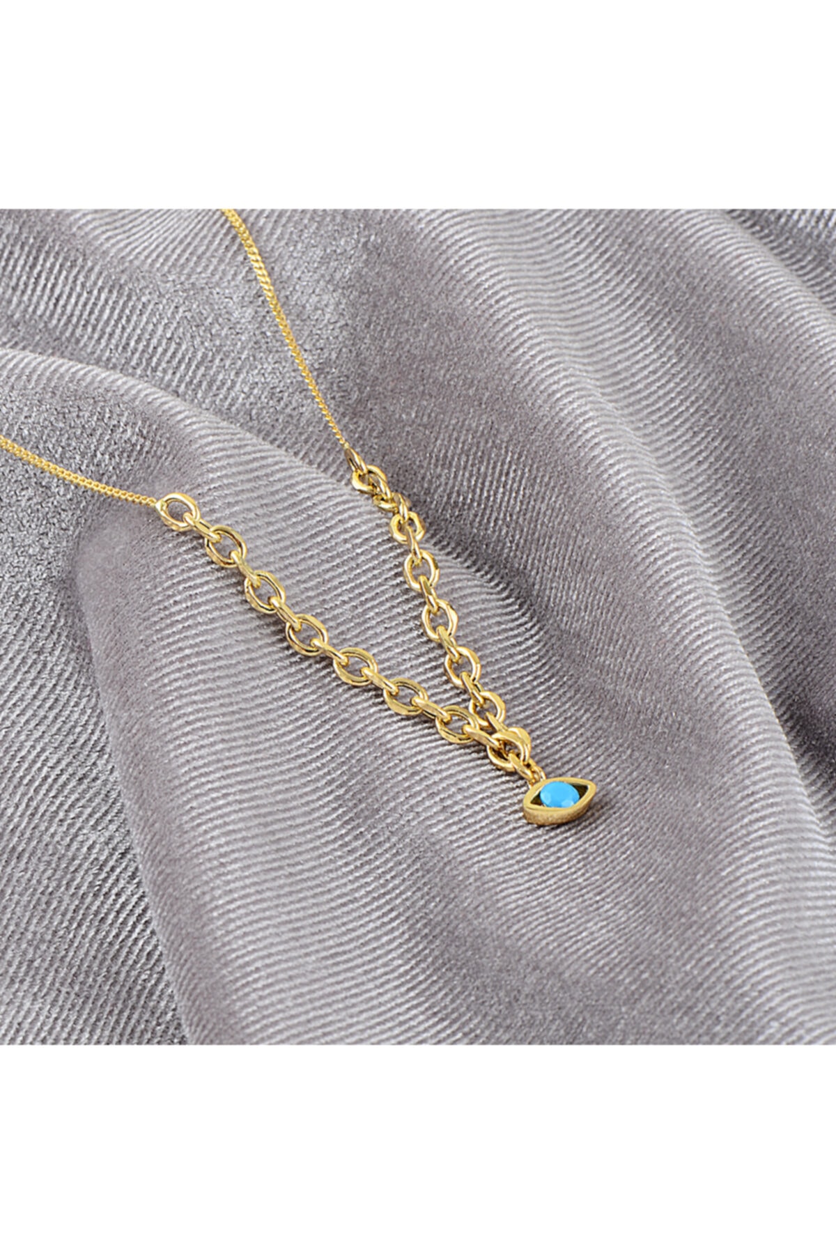 2,60 gram 50cm uzunluğunda çift model zincirli firuze taşlı göz altın kolye