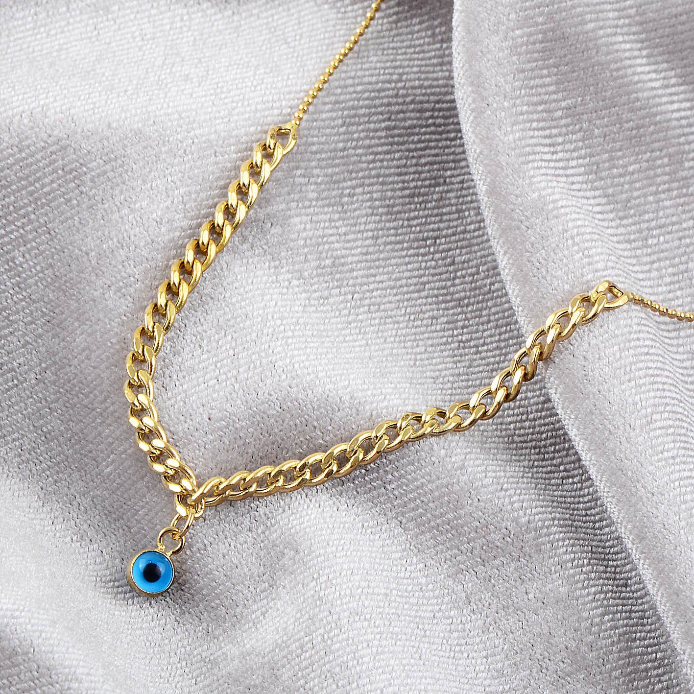 Gurmet Ve Parlak Top Zincirli Nazar 2,85 gram ağırlığında 50 cm uzunluğunda çift model zincirli nazar boncuklu altın koly